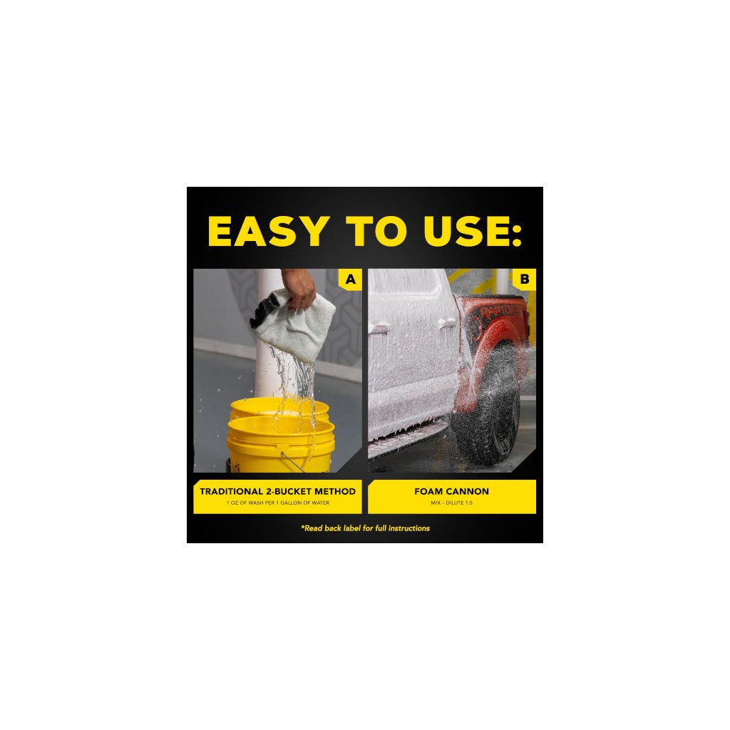 Meguiar’s® Watermelon Bubblegum Scented Car Wash ist ein konzentriertes, schäumendes Autowaschmittel, das außergewöhnliche Reinigung und extra-reichen Schaum bietet. Diese neue Formel wurde entwickelt, um Schmutz, Verunreinigungen und Dreck schnell und effizient von der Lackierung Ihres Fahrzeugs zu entfernen und dabei sanft zum Lack ist. Da es pH-neutral ist, ist es hart gegen Schmutz, aber bei richtiger Verdünnung, sicher für die Verwendung auf Wachsen, Versiegelungen und Beschichtungen. Watermelon Bubblegum Scented Car Wash ist eine ausgezeichnete Wahl, egal ob Sie es als traditionelle Wäsche in einem Autowasch-Eimer, Schaumkanone oder -pistole verwenden möchten. Bei der Verwendung in einem Eimer mischen Sie 30ml des Autoshampoos pro 3,8 L Wasser und verwenden Sie die Zwei-Eimer-Methode, um die Entstehung von Wirbelkratzern zu verringern. Bei der Verwendung einer Schaumkanone oder -pistole mischen Sie einen Teil des Autoshampoos mit fünf Teilen Wasser in Ihrer Schaumkanonenflasche. Dieses Autowaschmittel trägt dazu bei, den Spaß am Waschen zurückzubringen: Mit der Kombination aus reichhaltiger Schaumbildung, überlegener Reinigung, um glänzende und saubere Lackierung zu enthüllen, und einem erstaunlichen Duft nach Wassermelone.