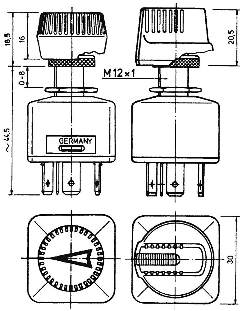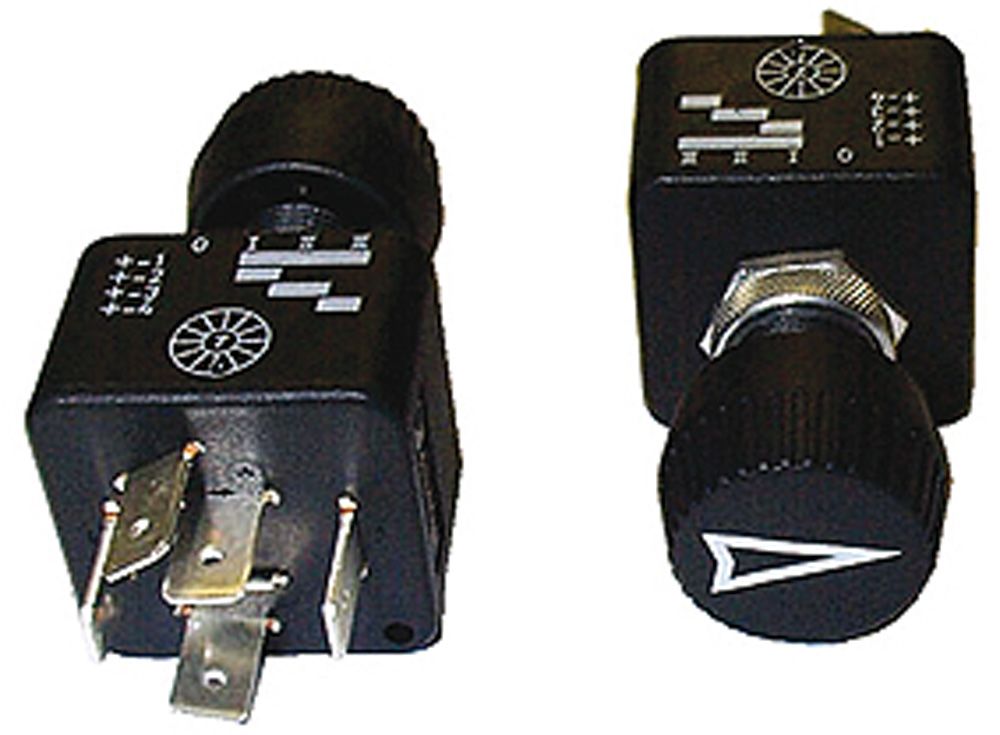 Schalterform: Drehschalter Funktion mechanisch: rastend Funktion elektrisch: Mehrstufig Spannung: 12 bis 24 Volt Belastbarkeit: 23 Ampère Einbauloch: rund Länge: 30...