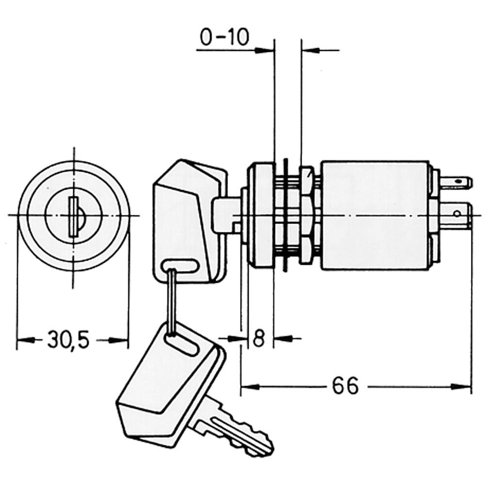 SchalterformZündschalterFunktion mechanischrastend / tastendFunktion elektrischMehrstufigSpannung12–24 VoltBelastbarkeit20 AmpèreEinbaulochrundDurchmesser22.5 mmBeleuchtungNeinWasserdichtNeinZusatzinformation- 0 - P - 1 <- 2