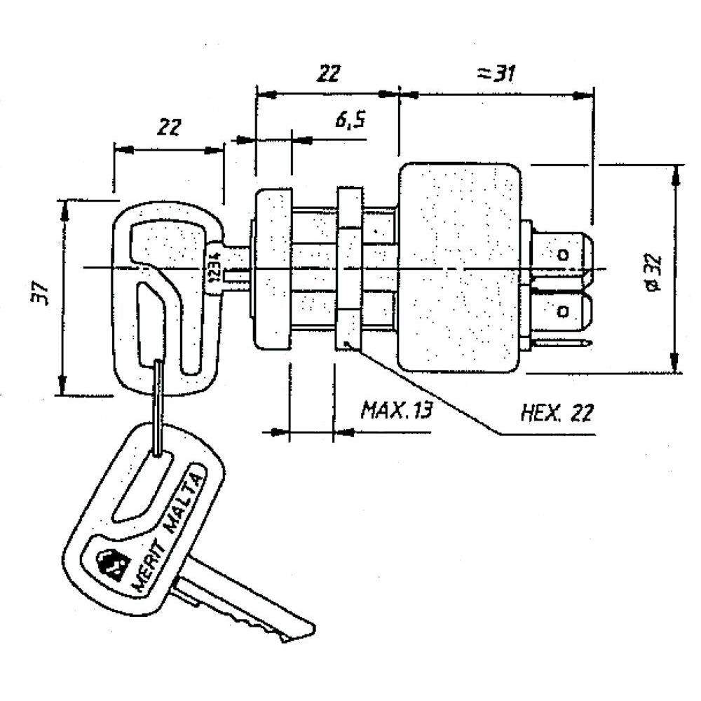 Schalterform: Zündschalter Funktion mechanisch: rastend Funktion elektrisch: Mehrstufig Spannung: 12 bis 24 Volt Belastbarkeit: 15 Ampère Einbauloch: rund Durchmesser: 19.5...