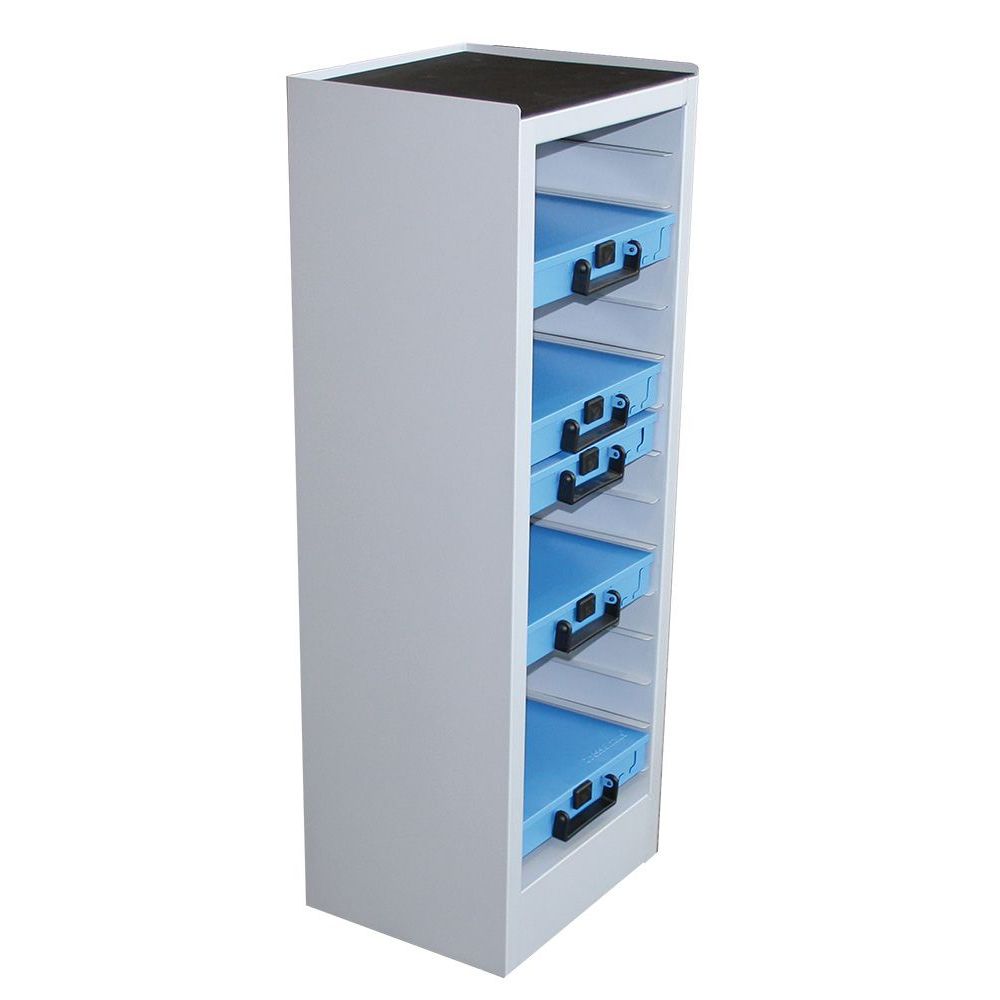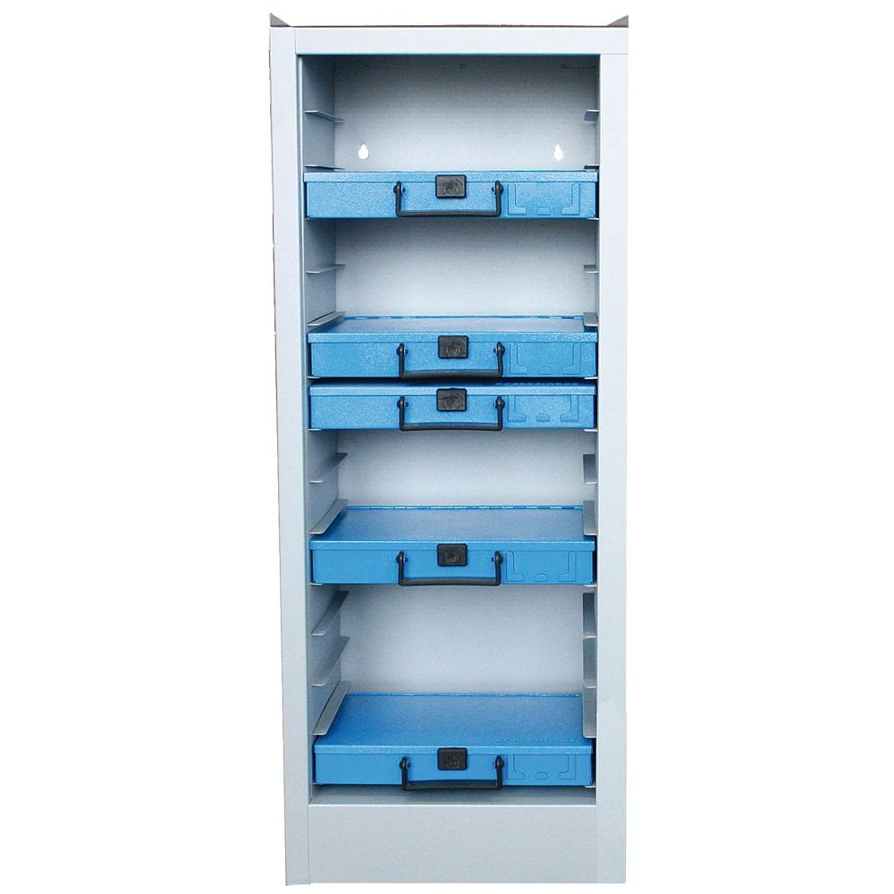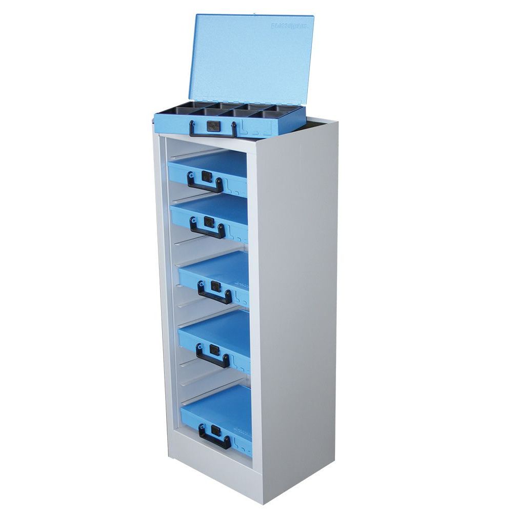 Metallschrank für 14 Sortimentskästen Korpus silbergrau mit gummierter Ablagefläche (schwarz) - ohne Sortimentskästen hochwertige, professionelle Verarbeitung auch für Wandmontage geeignetAbmessungen1020...