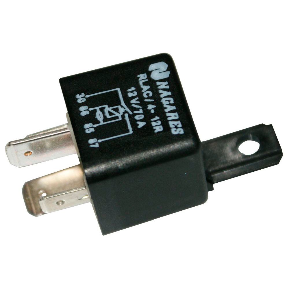 RelaisformMinirelaisSchaltfunktionSchliesserSpannung12 VLeistung Arbeitskontakt70 AmpèreHalterJaParallelwiderstandJaLöschdiodeNeinSicherungNeinAnschluss 30 seitlichNeinDauerstromJaWasserdichtNeinZusatzinformation- Anschlüsse: 2 x 6.3 mm, 2 x 9.5 mm