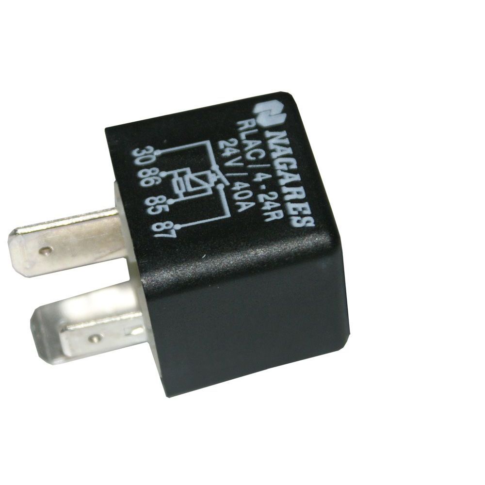 Relaisform: Minirelais Schaltfunktion: Schliesser Spannung: 24 V Leistung Arbeitskontakt: 40 Ampère Halter: Nein Parallelwiderstand: Ja Löschdiode: Nein Sicherung: Nein Anschluss...