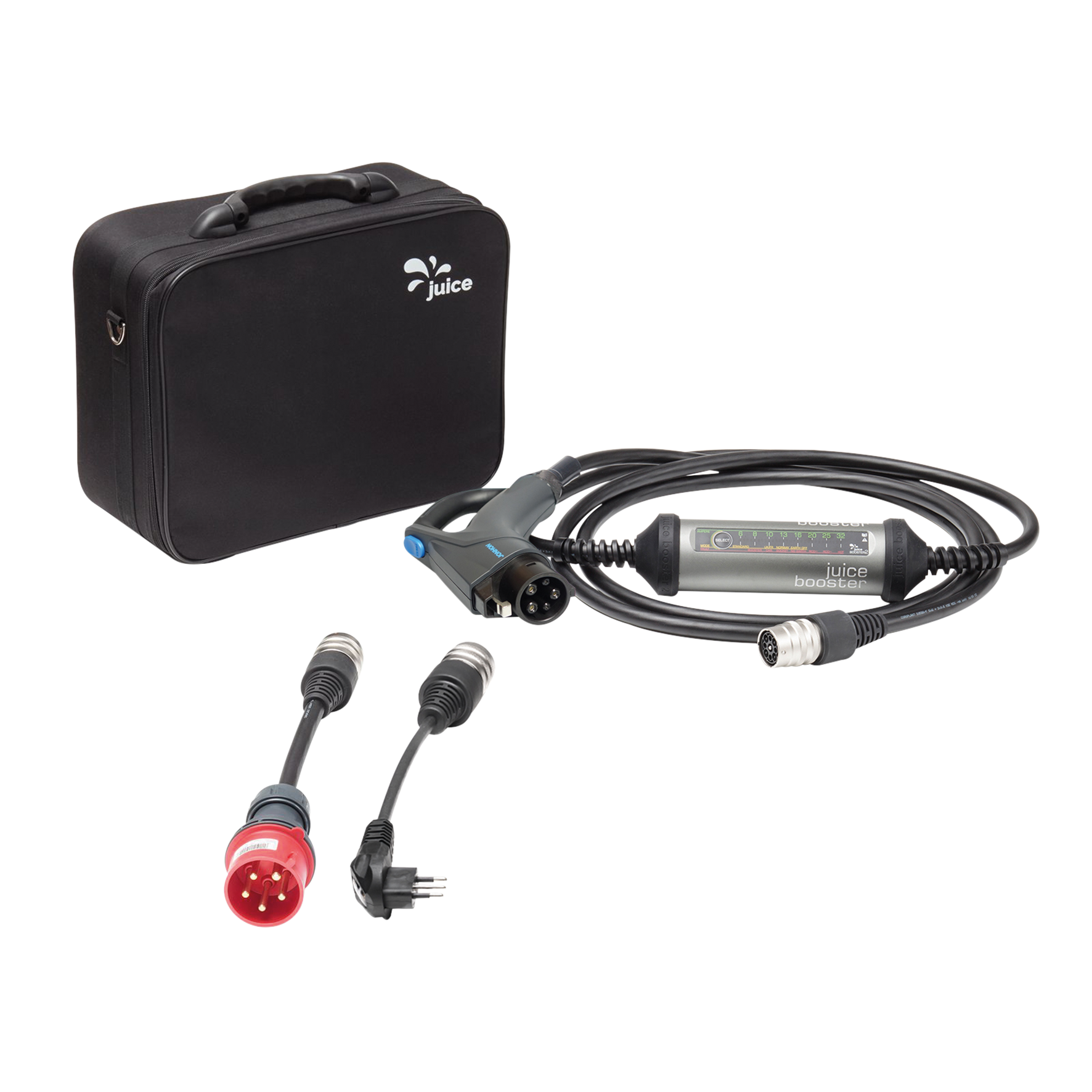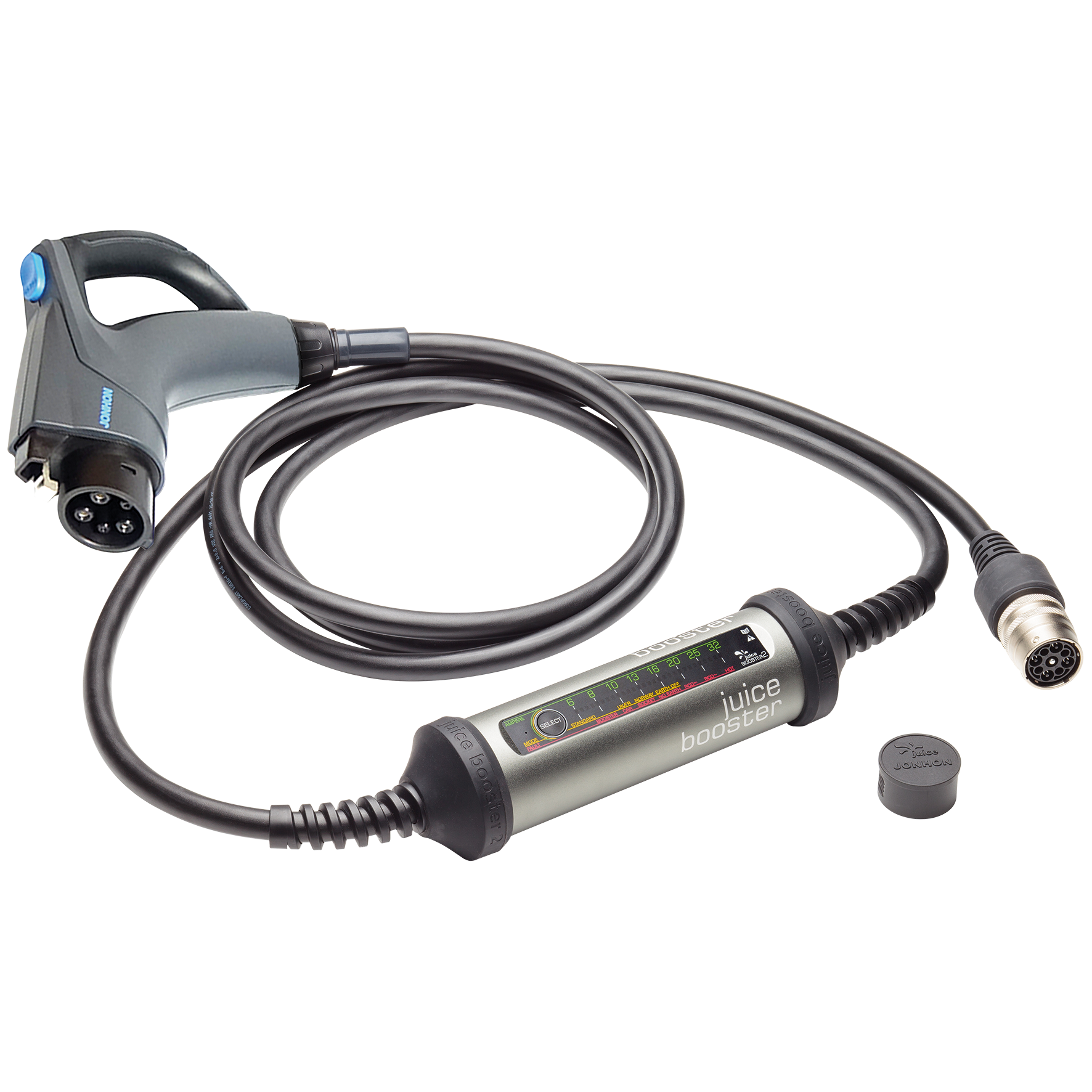 Der Juice Booster 2 ist eine universelle, mobile Ladestation (Reiseladegerät) für ALLE Elektro-Fahrzeuge mit Typ 1-Steckdose. Anschluss an allen Steckdosen möglich; der Ladestrom wird jeweils automatisch der entsprechenden Steckdose angepasst. Standardmässig mit 2 Adapterkabeln (1x T13 (CH) & 1x CEE32-Stecker).