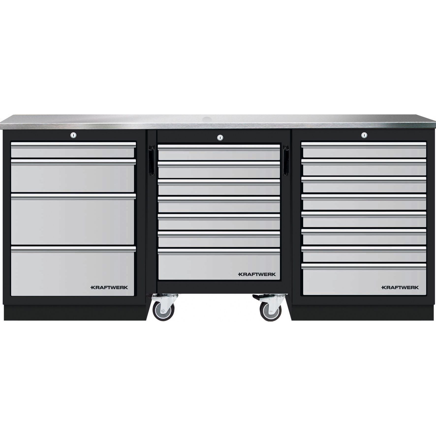 Mobilio 3er Kombi mit Werkstattwagen, inox, 3 Schublade 3964K-4R8IX