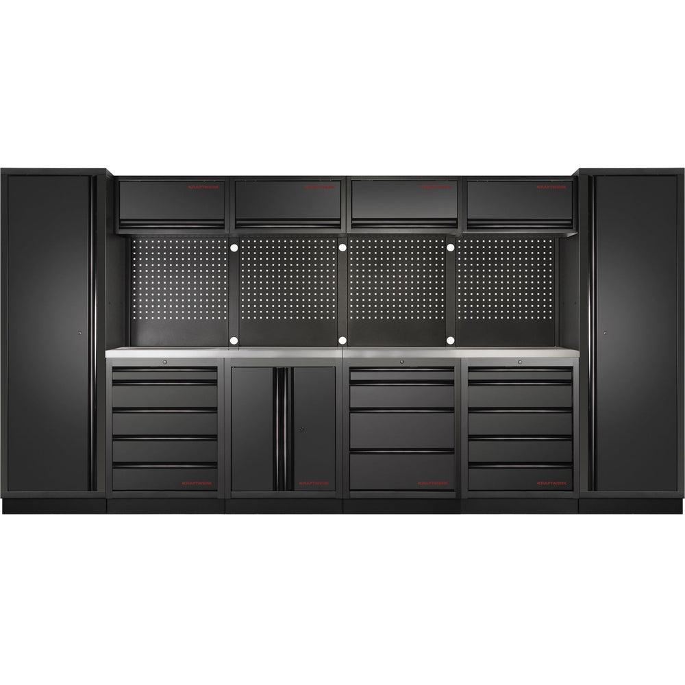 Die KRAFTWERK MOBILIO BLACK EDITION 6er Kombi bietet eine optimale Kombination aus Stauraum, Flexibilität und Langlebigkeit. Mit ihrer freistehenden Konstruktion, die ohne feste Befestigungen auskommt, kannst du die Module ganz nach deinen Bedürfnissen aufstellen. Egal ob für große Werkstätten oder kompakte Arbeitsbereiche, jedes Modul ist individuell platzierbar, sodass du die Kombination jederzeit anpassen oder optional mit weiteren Elementen erweitern kannst. Sie eignet sich perfekt für eine professionelle Arbeitsumgebung, in der Ordnung und Effizienz großgeschrieben werden.