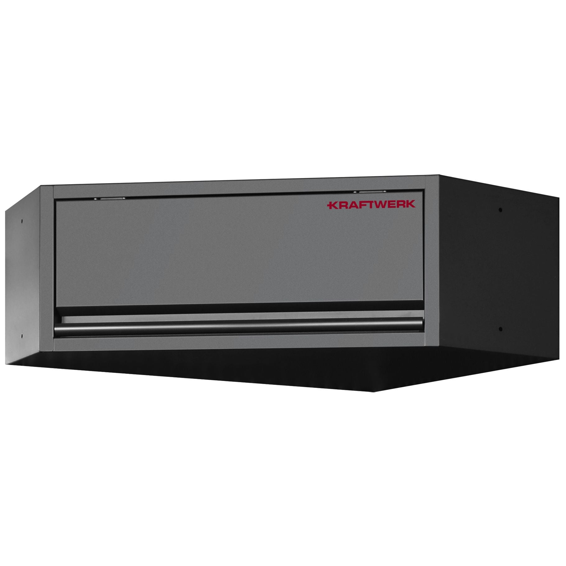 Der Schrank ist in stilvollem Schwarz gehalten. Dieses Design passt sich nicht nur optisch jeder modernen Werkstatt an, sondern ist auch besonders pflegeleicht und unempfindlich gegenüber Schmutz. Mit seinen kompakten Maßen von 864 mm Breite, 350 mm Höhe und 281 mm Tiefe fügt sich der Eck-Oberschrank perfekt in jede Raumnische ein, ohne dabei Platz zu verschwenden.