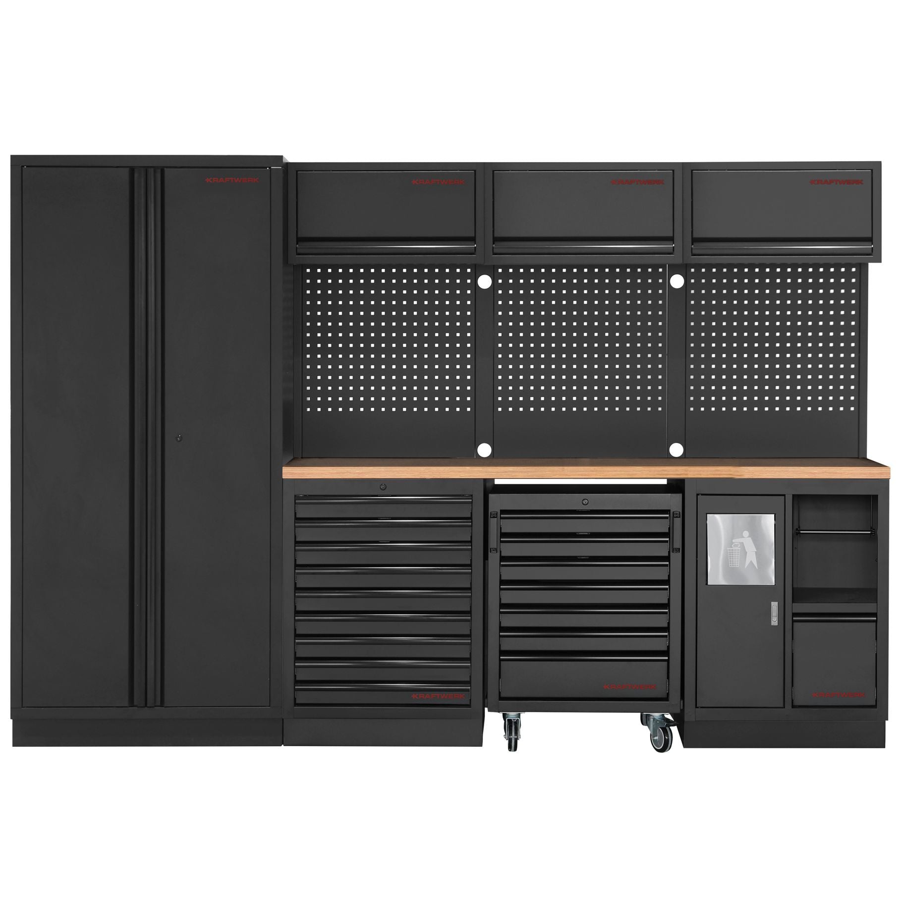Die KRAFTWERK MOBILIO BLACK EDITION 4er Kombi bietet Dir die ideale Lösung für Deine Werkstattorganisation. Diese vielseitige Kombination aus hochwertigen Modulen ist perfekt aufeinander abgestimmt und lässt sich nach Deinen individuellen Bedürfnissen zusammenstellen. Ob für Profi- oder Hobbywerkstatt – die freistehende Konstruktion macht eine einfache, flexible Platzierung ohne Befestigung möglich. Mit den großzügigen Maßen H 2000 x B 2955 x T 721 mm für optimale Raumnutzung.
