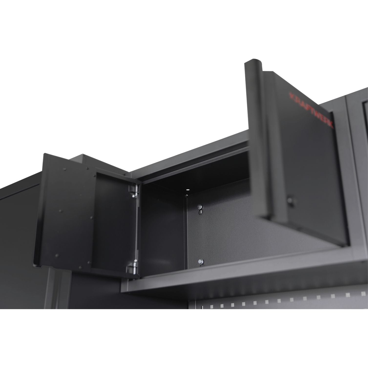 Mit dem KRAFTWERK MOBILIO BLACK EDITION Oberschrank 2-türig mit Schloss ergänzt Du Deine Werkstatt um einen sicheren und kompakten Stauraum – die perfekte Wahl für mehr Ordnung und Schutz.