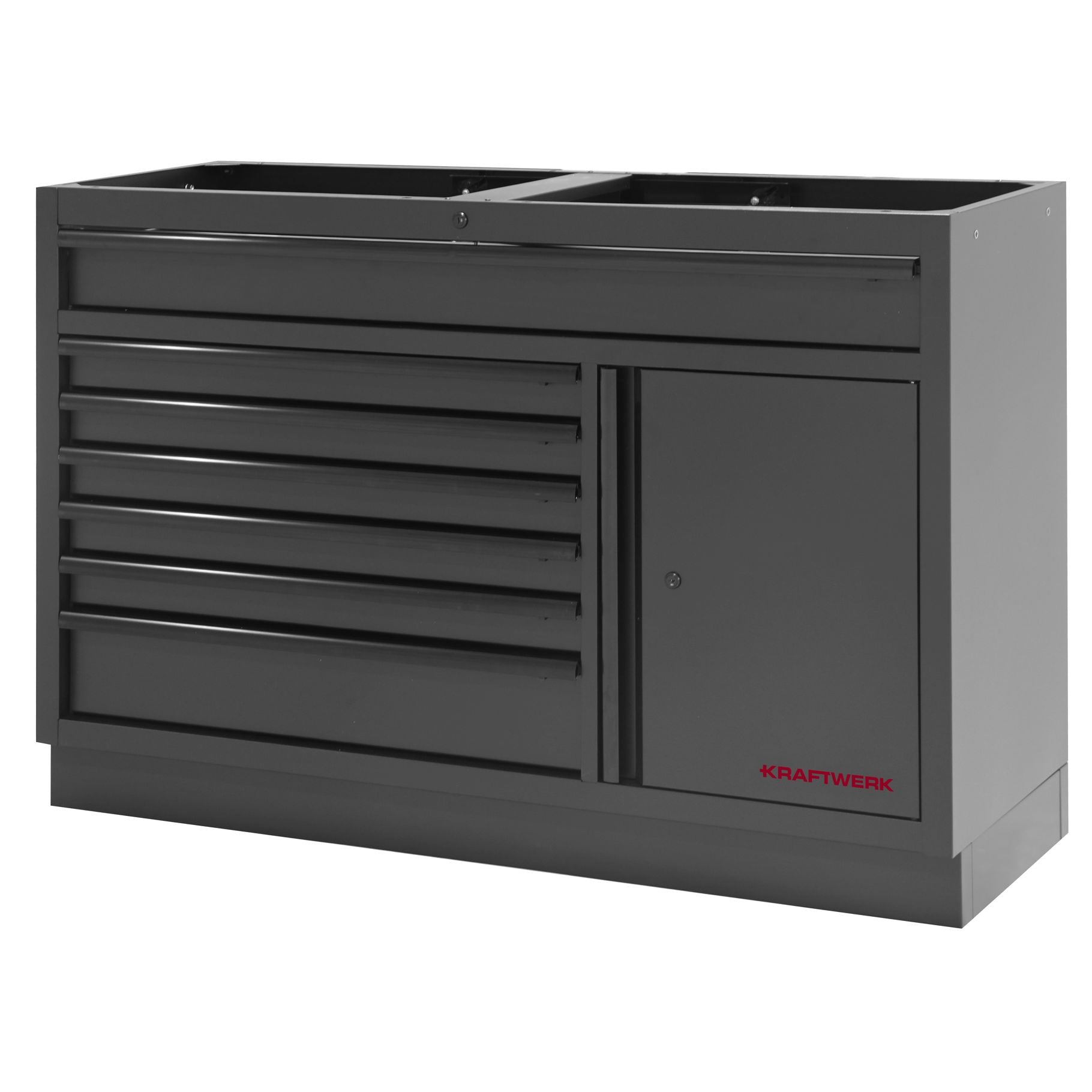 Mit dem KRAFTWERK MOBILIO BLACK EDITION Unterschrank breit mit 7 Schubladen und 1 Schrank schaffst Du Ordnung, Sicherheit und Komfort in Deiner Werkstatt – die perfekte Ergänzung für Deine Arbeitsumgebung.