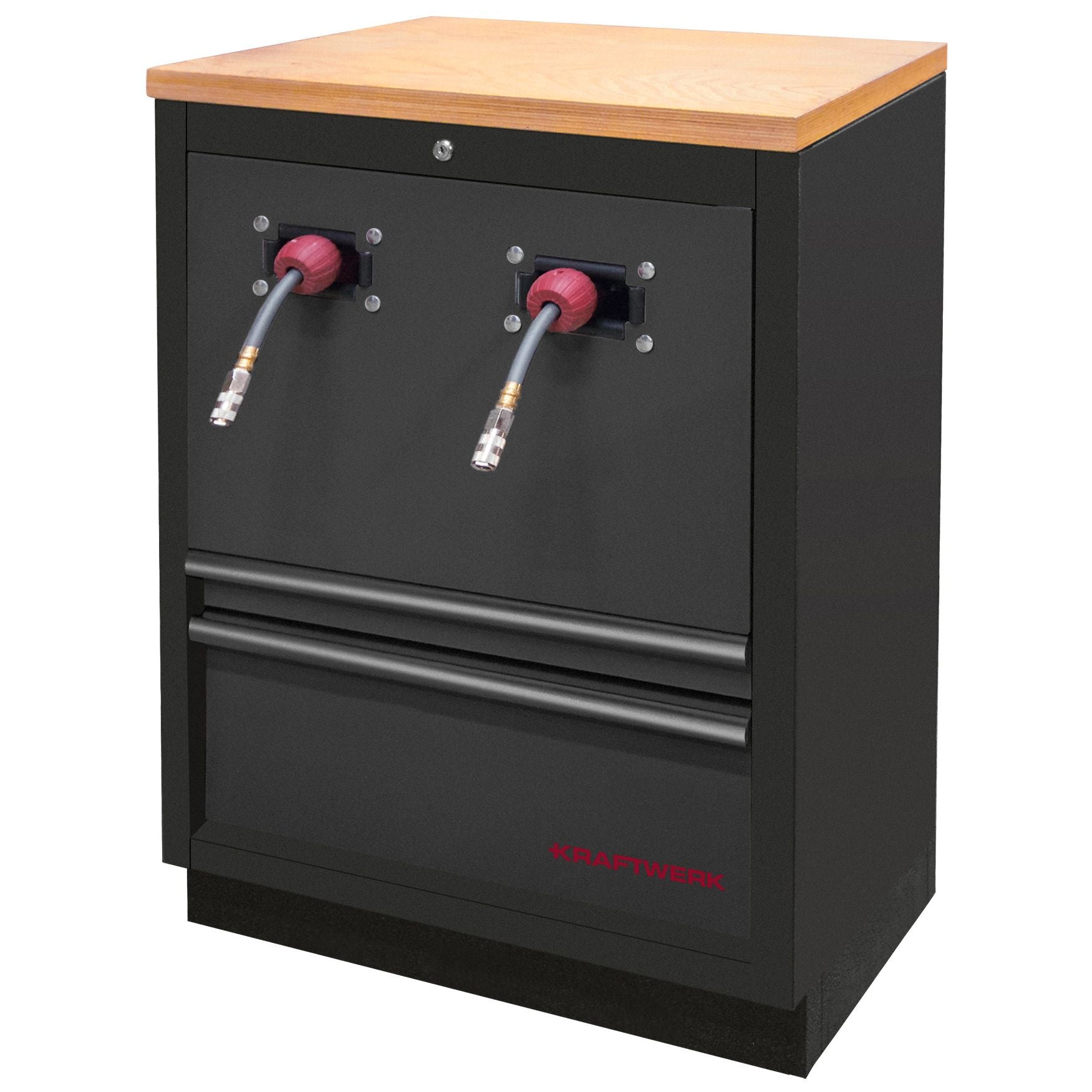 Praktischer Stauraum für deine Werkstatt: Der KRAFTWERK MOBILIO BLACK EDITION Unterschrank für Kabel- und Schlauchaufroller