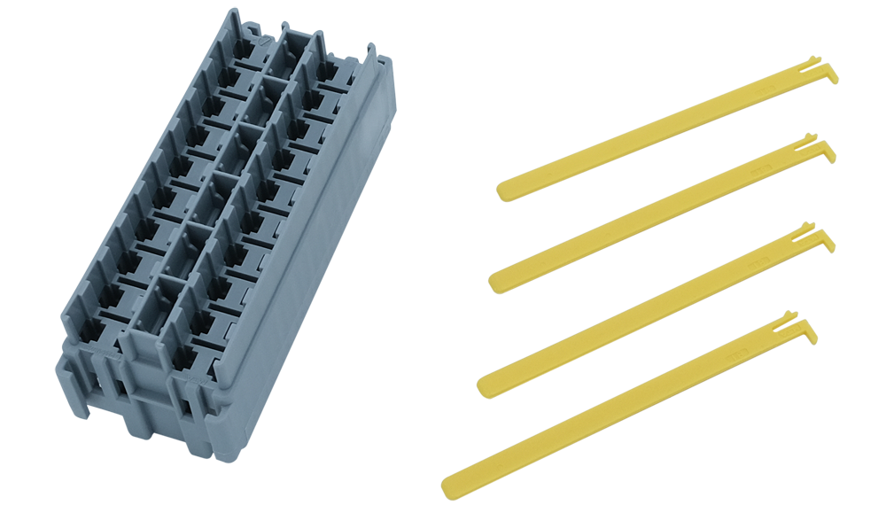 Modul für Minival 20fach, grau Material: PA66 MD25Ampère-Abmessungen91.6 x 35 x 38mmLochabstand-DIN/SAE-