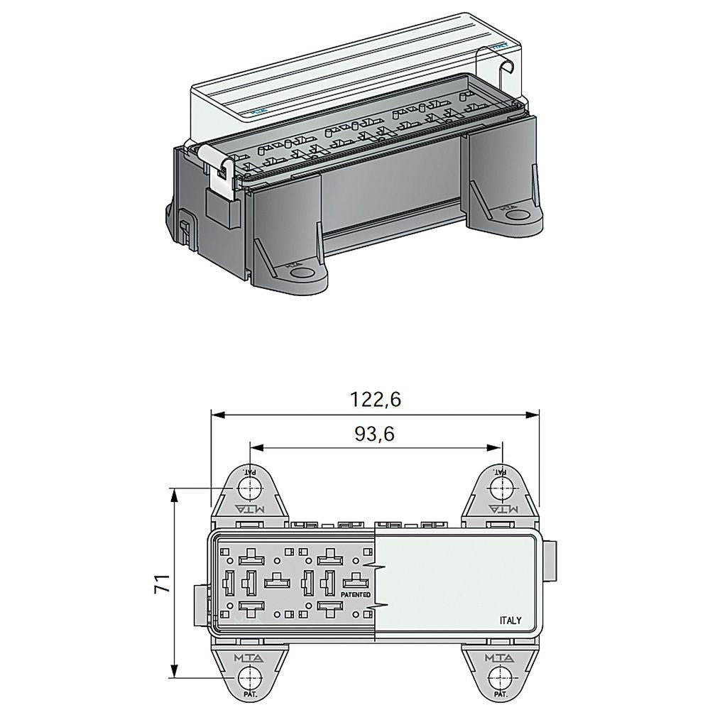 Relaisdose für 4x MINI-Relais ohne Halter, 5-polig (auch Wechsler), komplett mit Halterung, Deckel und FlachsteckernAbmessungen125 x 42 (89) x 65...