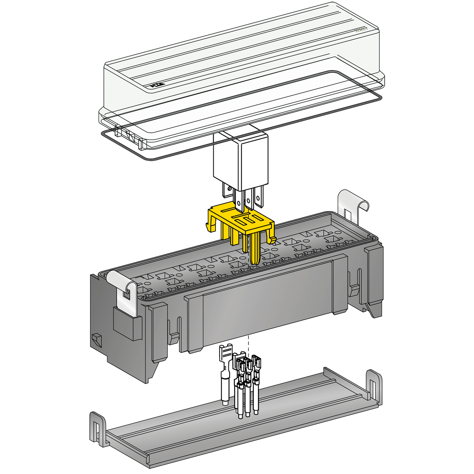 - unterer Deckel kann bei Bedarf weggelassen werden - wird komplett mit 4.8 und 6.3 mm Kabelschuhen und Verriegelungen für...