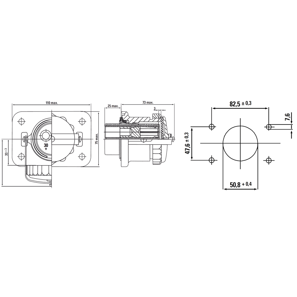 Lieferumfang: Steckdose inklusiv 2 Stück Crimp-/Lötkontakte für 35 mm² Kabel. !! Sockeldichtung mit Kabel-/Wellrohr-Sicherung ist NICHT im Lieferumfang !!Anzahl Pole2Abmessungen110...