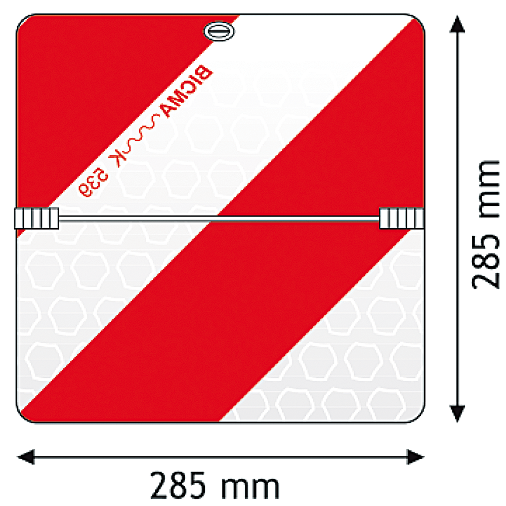 Aluminium mit abgerundeten Ecken Streifen links nach unten weisendAbmessungen285x285x2mm