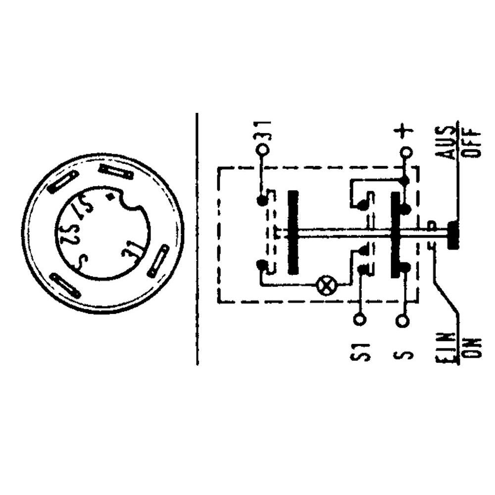 - mit Beleuchtung 12 V - Schalter ist 12/24 V tauglich - für 24 V einfach die Glühlampe ersetzen (1602)