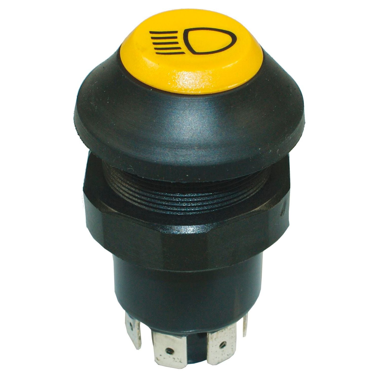 Schalterform: Druckschalter Funktion mechanisch: rastend Funktion elektrisch: Umschalter Spannung: 12 Volt Belastbarkeit: 20 Ampère Einbauloch: rund Breite / Tiefe: 54 mm Durchmesser: 30 mm Beleuchtung: Ja Wasserdicht: Ja IP-Grad: 67 Zusatzinformation: - Schalter ist 12/24V tauglich - für 24V einfach die Glühlampe ersetzen (1602) - Fendt-Nr: 830 240 098