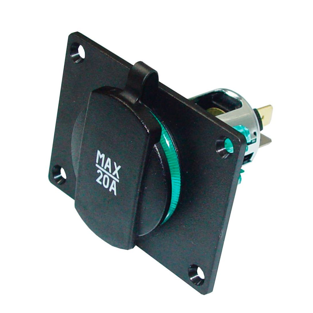 Innen-ø 20mm, 12-24V, 20A Einbautiefe 56mmAnzahl Pole2AbmessungenEinbau-ø 32mm / Montageplatte: 60x45x2.2mm