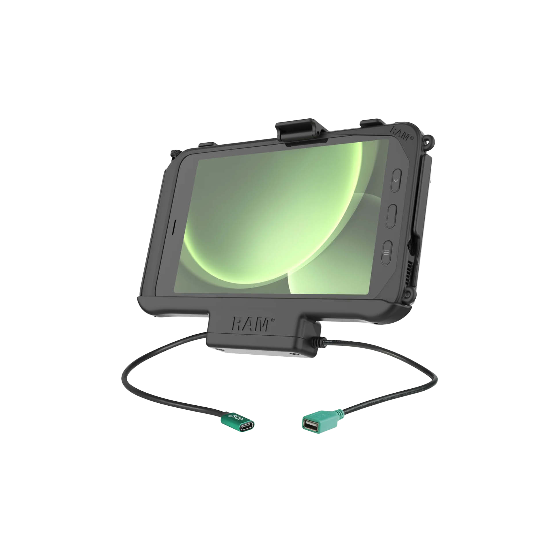 Diese RAM® EZ-Roll'r™-Stromversorgungshalterung für das Samsung Tab Active5, Tab Active3 und 2 wurde entwickelt, um die Anforderungen von Aussendienstmitarbeitern in einer Vielzahl von Anwendungen zu erfüllen, darunter Transport, Aussendienst, Logistik, Fertigung und vieles mehr. Das Gerät wird über GDS®-Pogo-Pins mit Strom und Daten synchronisiert, während der USB-A-Anschluss der Halterung zur Unterstützung eines zusätzlichen Peripheriegeräts genutzt wird. Der Zugriff auf den Stylus bleibt erhalten, während das Gerät angedockt ist. Im Lieferumfang ist ein Satz von vier Schrauben und Muttern enthalten, mit denen die Halterung an allen RAM®-Komponenten mit dem universellen 4-Loch-AMPS-Muster befestigt werden kann. Auf der Rückseite der Halterung ist ausserdem Platz für einen GDS® Hand-Stand™, mit dem Sie Ihr Tab Active5, 3 & 2 mühelos aus dem Fahrzeug, zu sich selbst oder auf den Schreibtisch mitnehmen können.