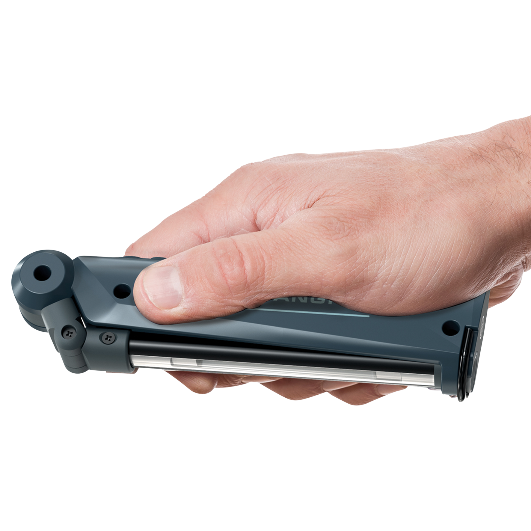 Sie verfügt über einen eingebauten Magneten und Haken sowie einen flexiblen, zu 100% faltbaren Leuchtenkopf, der flexible Positionierungsmöglichkeiten bietet. Das Design ermöglicht den traditionellen Handbetrieb, und die kompakte Grösse sorgt dafür, dass SLIM überallhin mitgenommen werden kann. Zusammengeklappt lässt sie sich leicht in eine Taschenlampe mit einem festen Griff verwandeln. Darüber hinaus gibt die benutzerfreundliche Batterieanzeige an, wie viel Strom noch übrig ist.