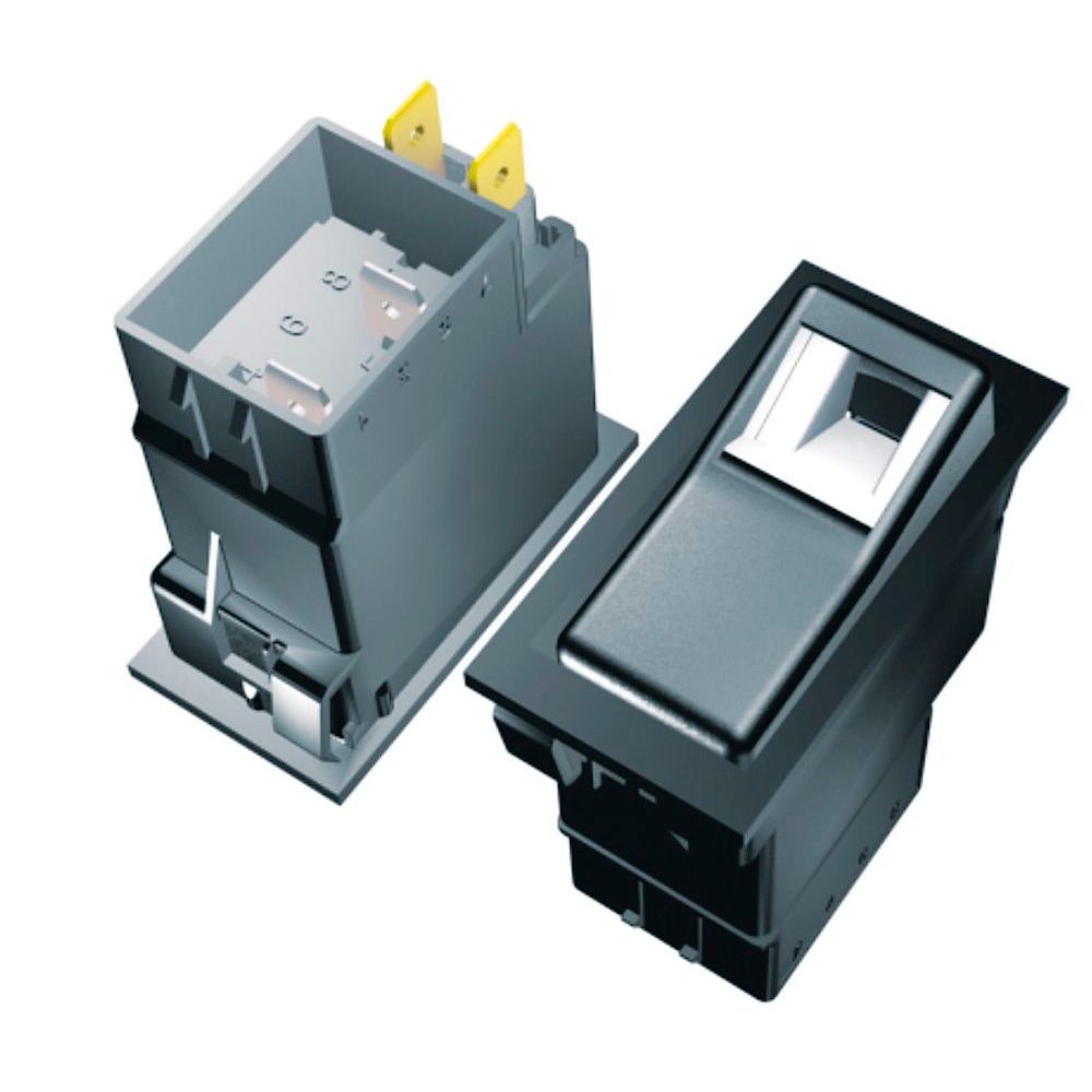 Schalterform: Wipptastenschalter Funktion mechanisch: rastend Funktion elektrisch: Schliesser Spannung: 24 Volt Belastbarkeit: 5 Ampère Einbauloch: rechteckig Länge: 44 mm Breite...