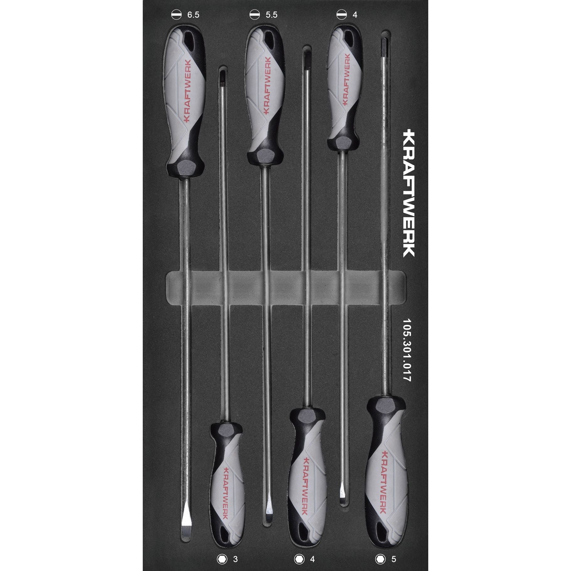 Anwendungsbereich: Ausstattung / Einrichtung BASIC LINE EVA Schraubendreher-Einlage, extra lange Ausführung, 20x40 cm, 6-tlg. Schlitz-Schraubendreher, 250 mm: 4.0 - 5.5...