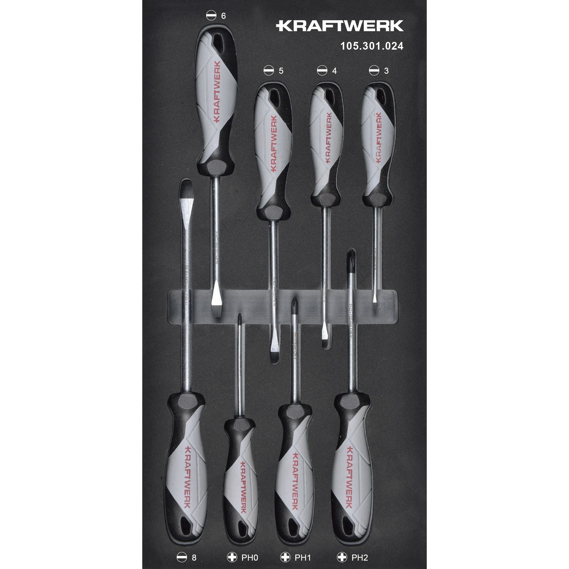Anwendungsbereich: Ausstattung / Einrichtung BASIC LINE EVA Schraubendreher-Einlage, 20x40 cm, 8-tlg. Schlitz Schraubendreher: 3.0 - 4.0 - 5.0 - 6.0...