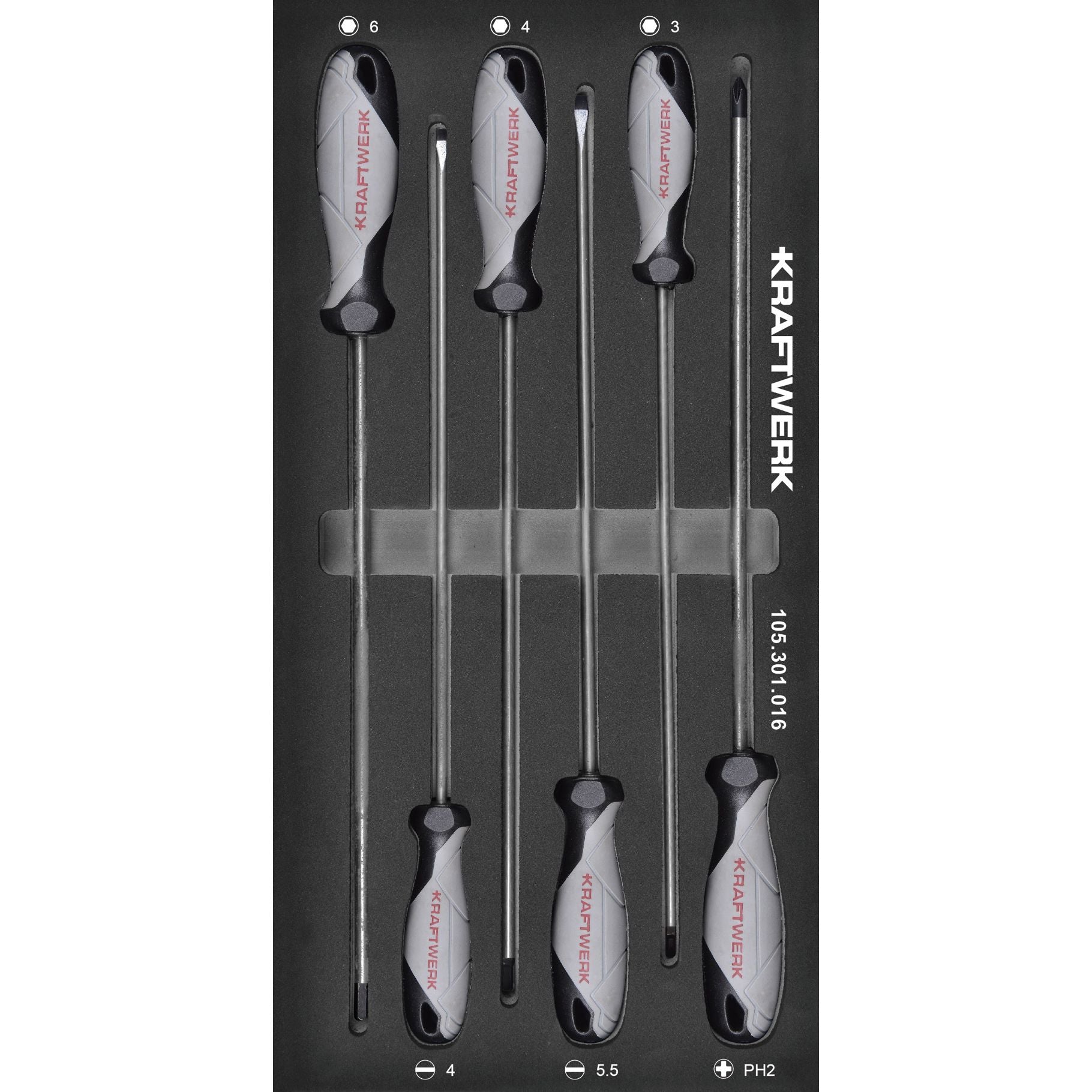 Anwendungsbereich: Ausstattung / Einrichtung BASIC LINE EVA Schraubendreher-Einlage, extra lange Ausführung, 20x40 cm, 6-tlg. Schlitz-Schraubendreher, 250 mm: 4.0 + 5.5...