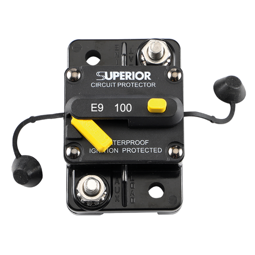 Preis für 1 Stück - max. 42 V- wasserfest- 2x 1/4“-28-UNC Anschlussbolzen- mit manuellem Auslöser Ampère 100...