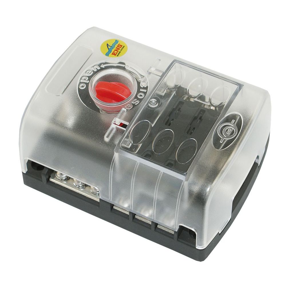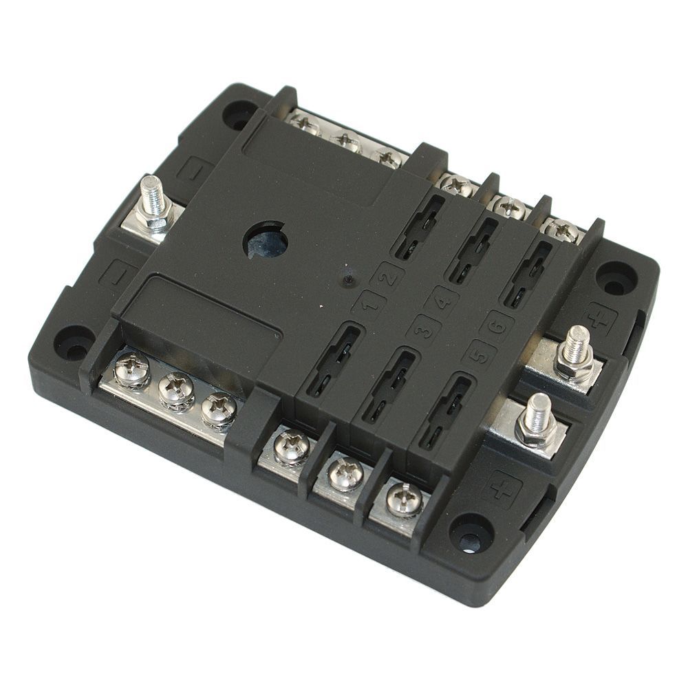 - für 6 x ATO Sicherungen (ohne Sicherungen) - 2 x Plus Anschluss M5 (nicht verbunden) - 1 x Minus...