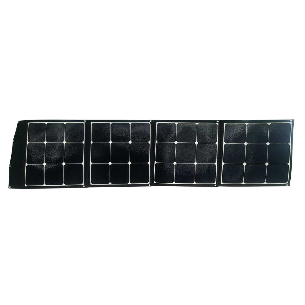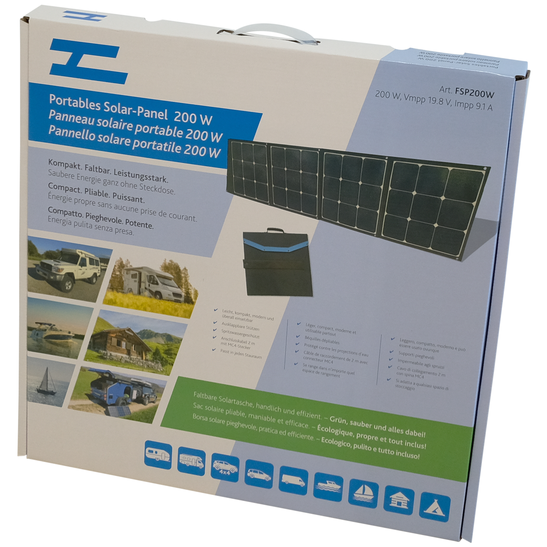 Faltbares Solarpanel mit hocheffizienten Solarzellen, ETFE beschichtet. Ausklappbare Stützen auf der Rückseite der Panele zur bequemen Ausrichtung für optimale Ladevorgänge....