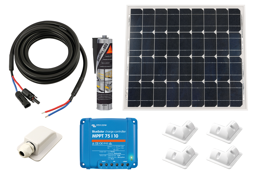 Besteht aus: - 1x Solar-Panel, 55 W (ohne Kabel) - 4x Eckhalterung - 1x Dachdurchführungstülle, 1-fach - 1x smarter Laderegler,...