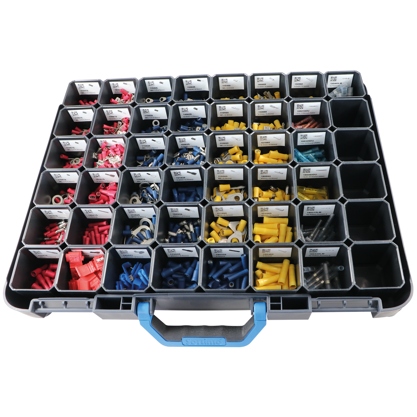 Sortiment Kabelschuhe in den gängigsten Grössen und Ausführungen im Kunststoff-Sortimentskoffer mit transparentem Deckel aus dem Sortimo T-Boxx System mit 48...