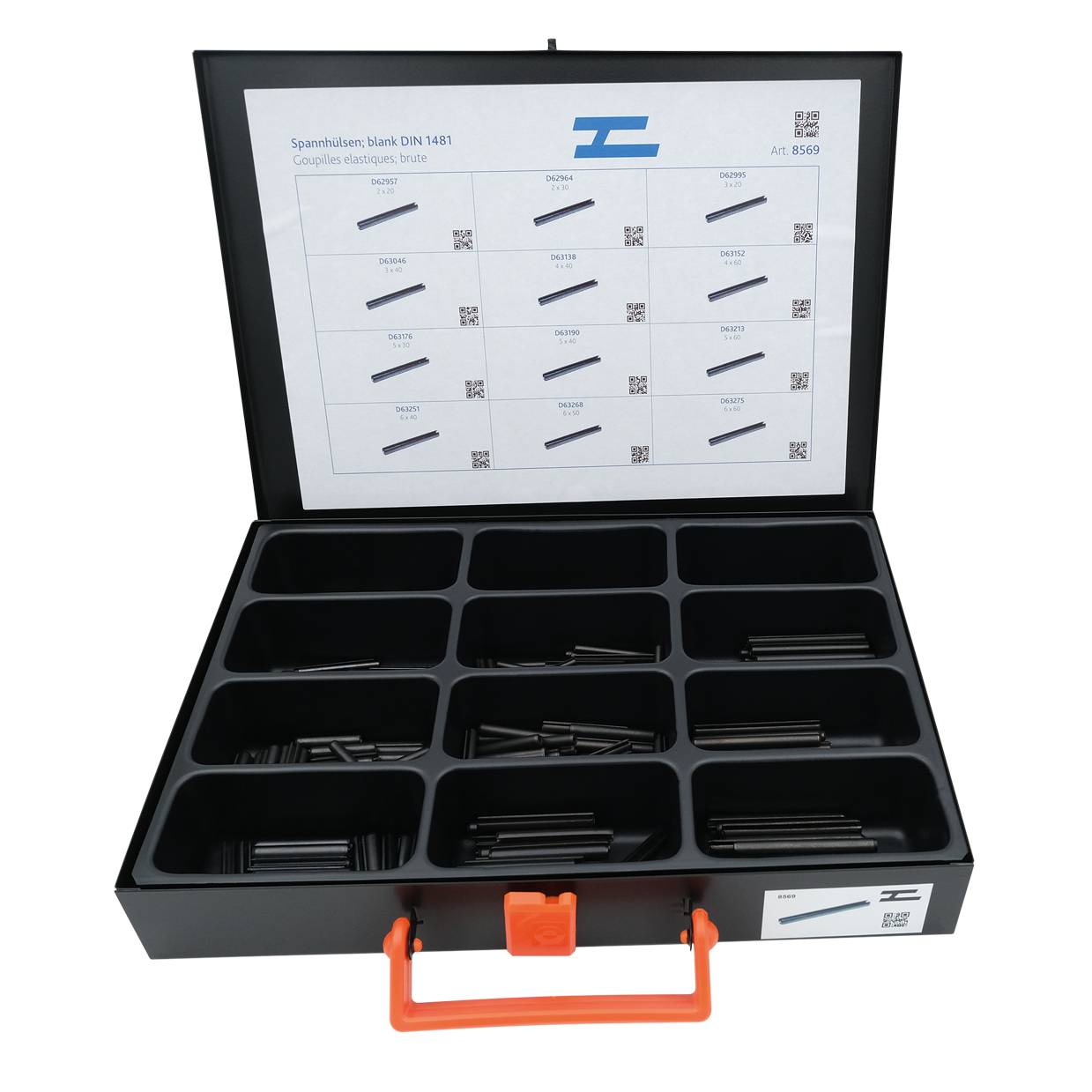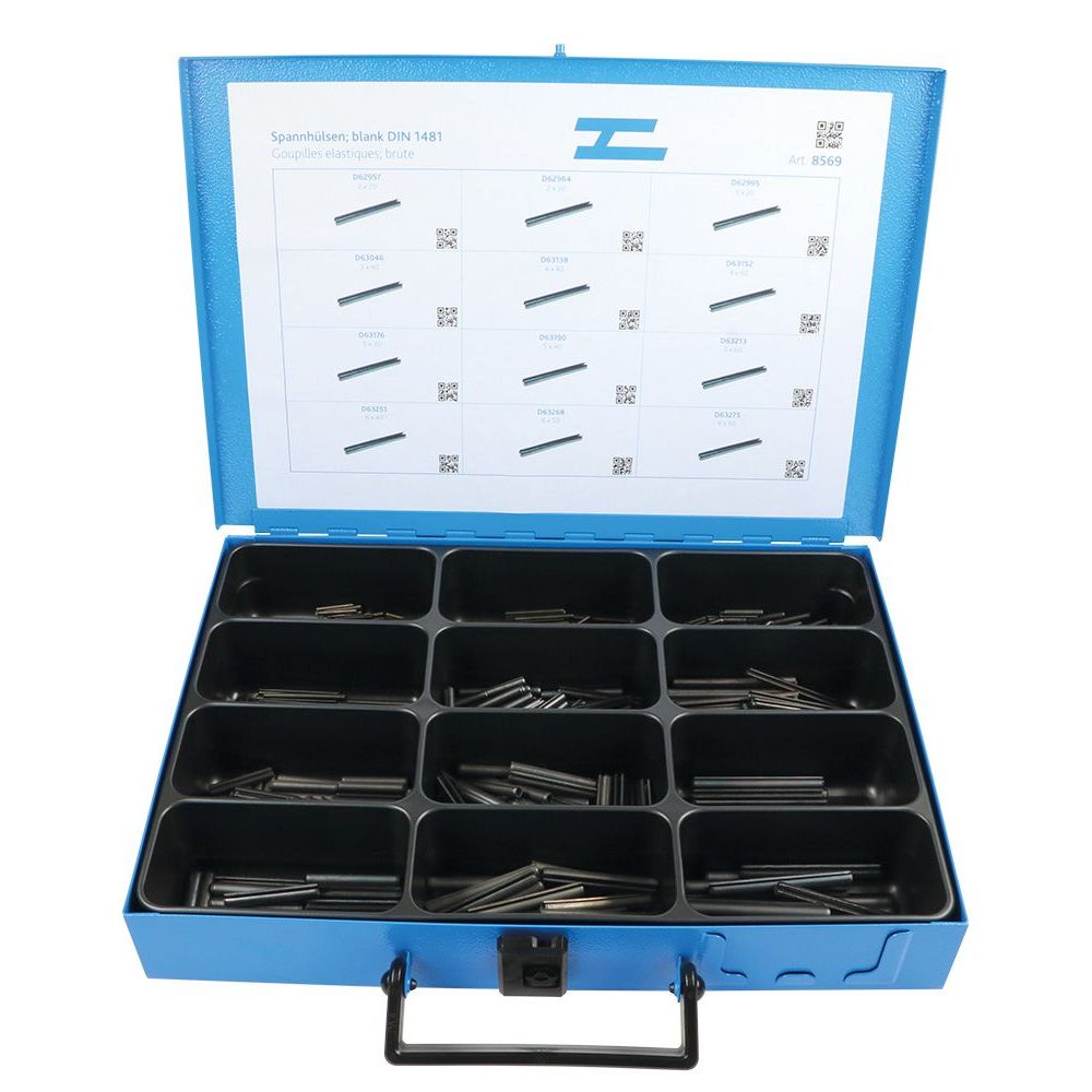Sortiment Spannhülsen im Metallkoffer mit 12 Fächern. Inhalt: 500 assortierte Spannhülsen in den Grössen 2x20 - 6x60mmAbmessungen330x230x54mmGarantie2 Jahre