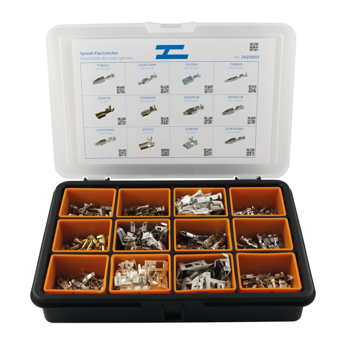 Sortiment Spezial-Flachstecker nicht isoliert im Kunststoffkoffer mit 12 Fächern: Inhalt: 300 Stk assortierte Stecker (je 25 Stk) für - AMP...
