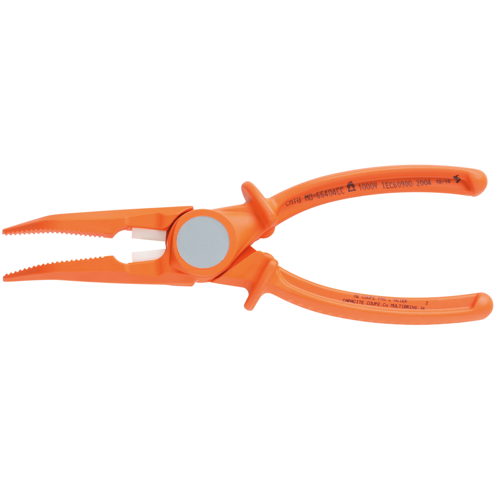 Vollisolierte Spitzzange abgewinkelt für Arbeiten unter Spannung. Profi Ausführung aus glasfaserverstärktem Kunststoff. - Zertifiziert nach EC 60900 - Klasse 0,...