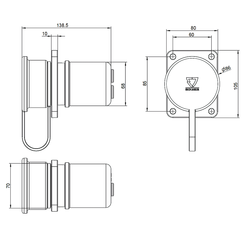 Steckdose 2-pol. 70mm2 f. Kabelanschluss M10