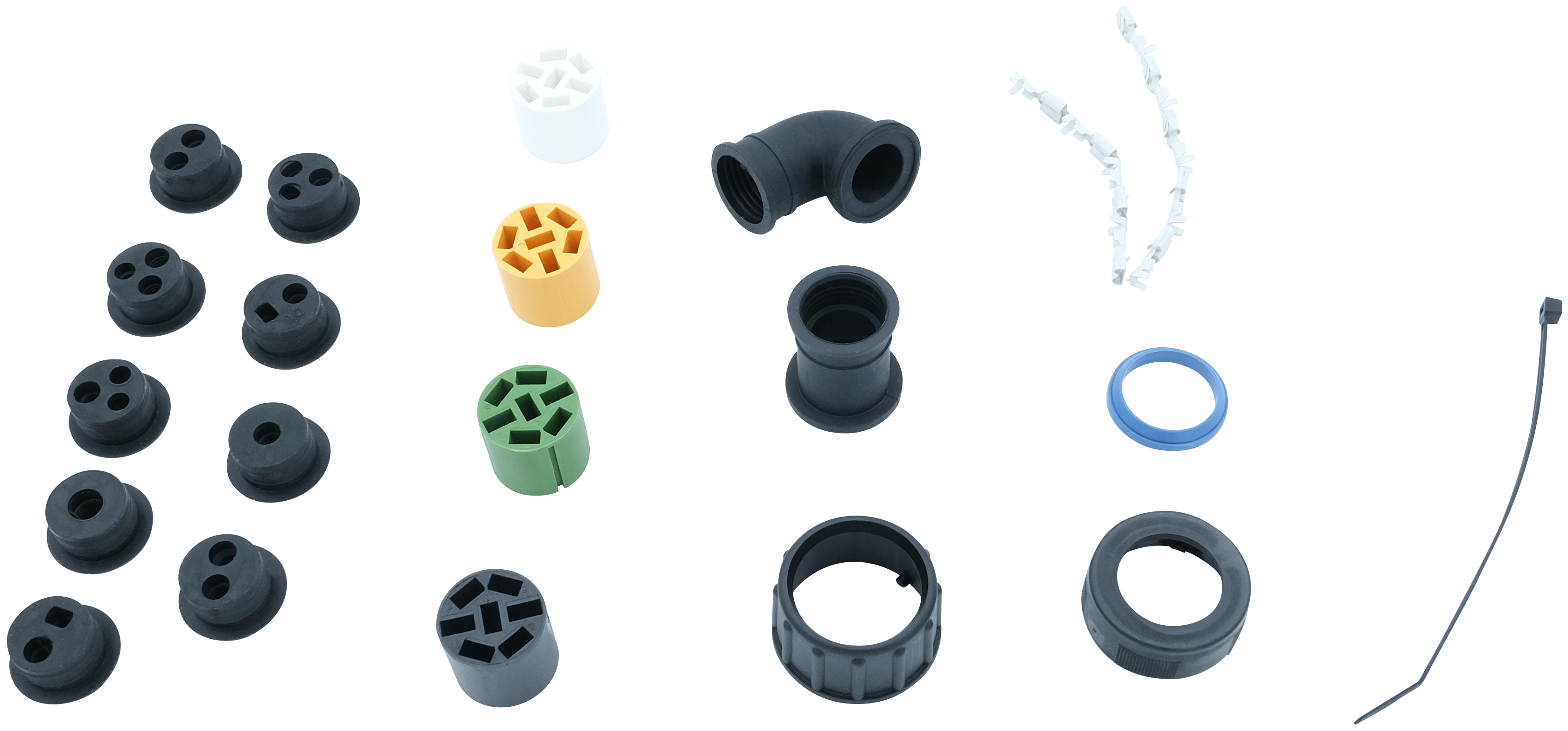 Stecker-Set 7-pol. ASS1+2 gelb / grün / weiss / schwarz
