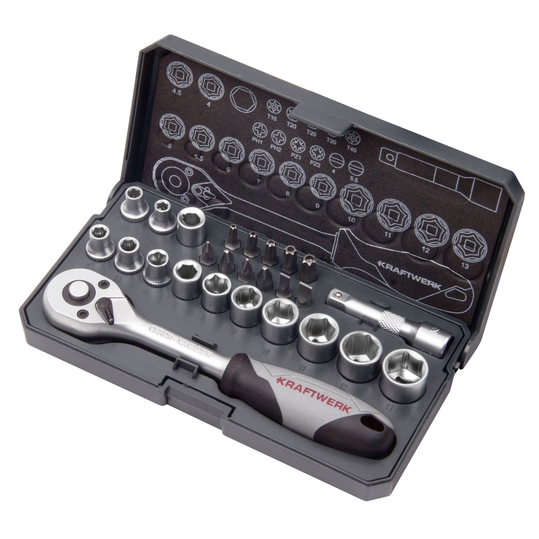 Anwendungsbereich: Handwerkzeuge BASIC LINE Steckschlüssel-Satz 1/4, 26-tlg. 1/4 Umschaltknarre 1/4 Verlängerung 50 mm 1/4 Steckschlüsseleinsätze (6 kt.) 4 - 4.5...