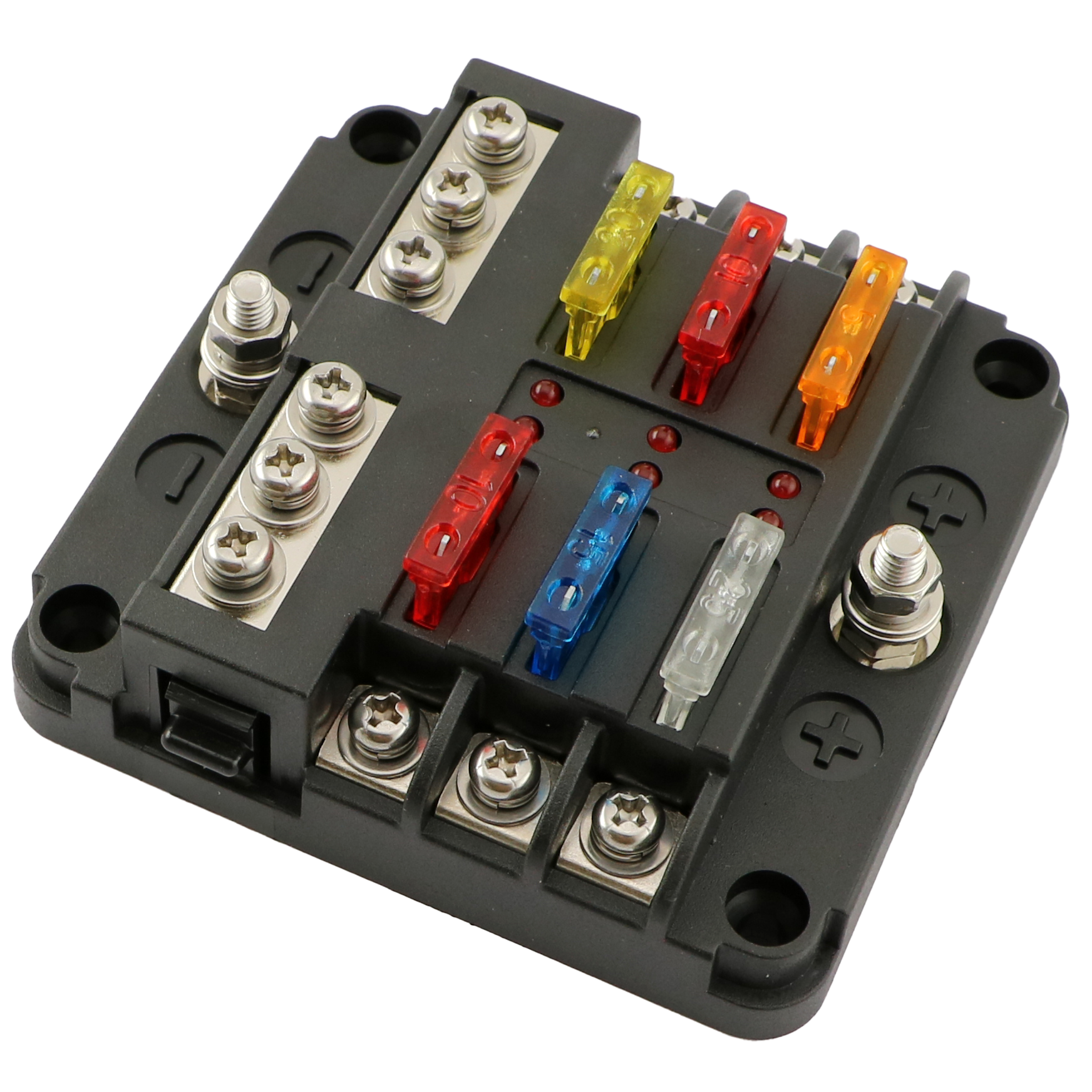 - für 6 x ATO Sicherungen - zentraler Plusanschluss und Masseverteiler - bis 32 V - LED leuchtet bei defekter...