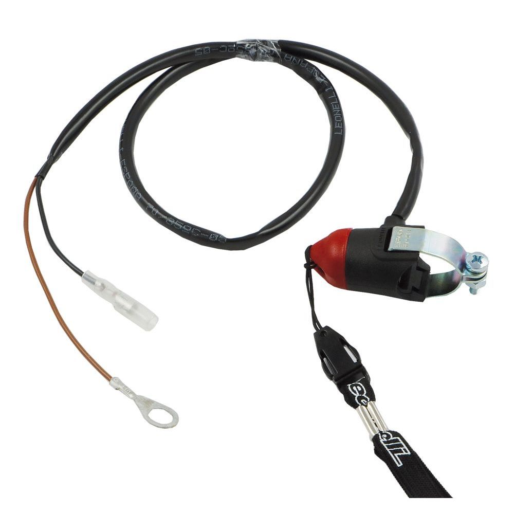 - Notausschalter aus Kunststoff mit Metallbriede. Dieser Schalter kann am Lenker montiert werden. Ausgelöst wird über ein Gummiband das am Handgelenk fixiert wird. Schutzart IP53