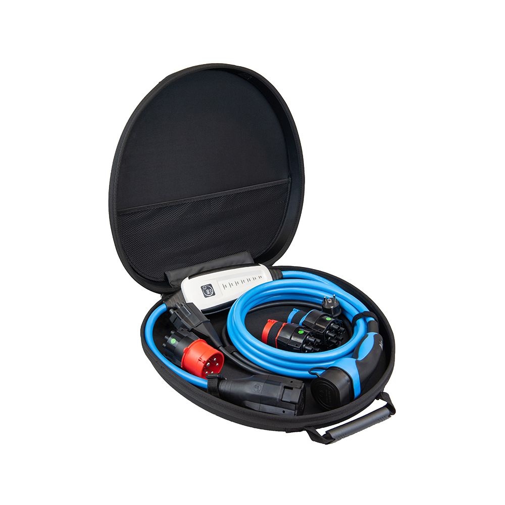 Schwarze Tragetasche mit Reissverschluss zur Lagerung des NRGkick Ladeequipment.