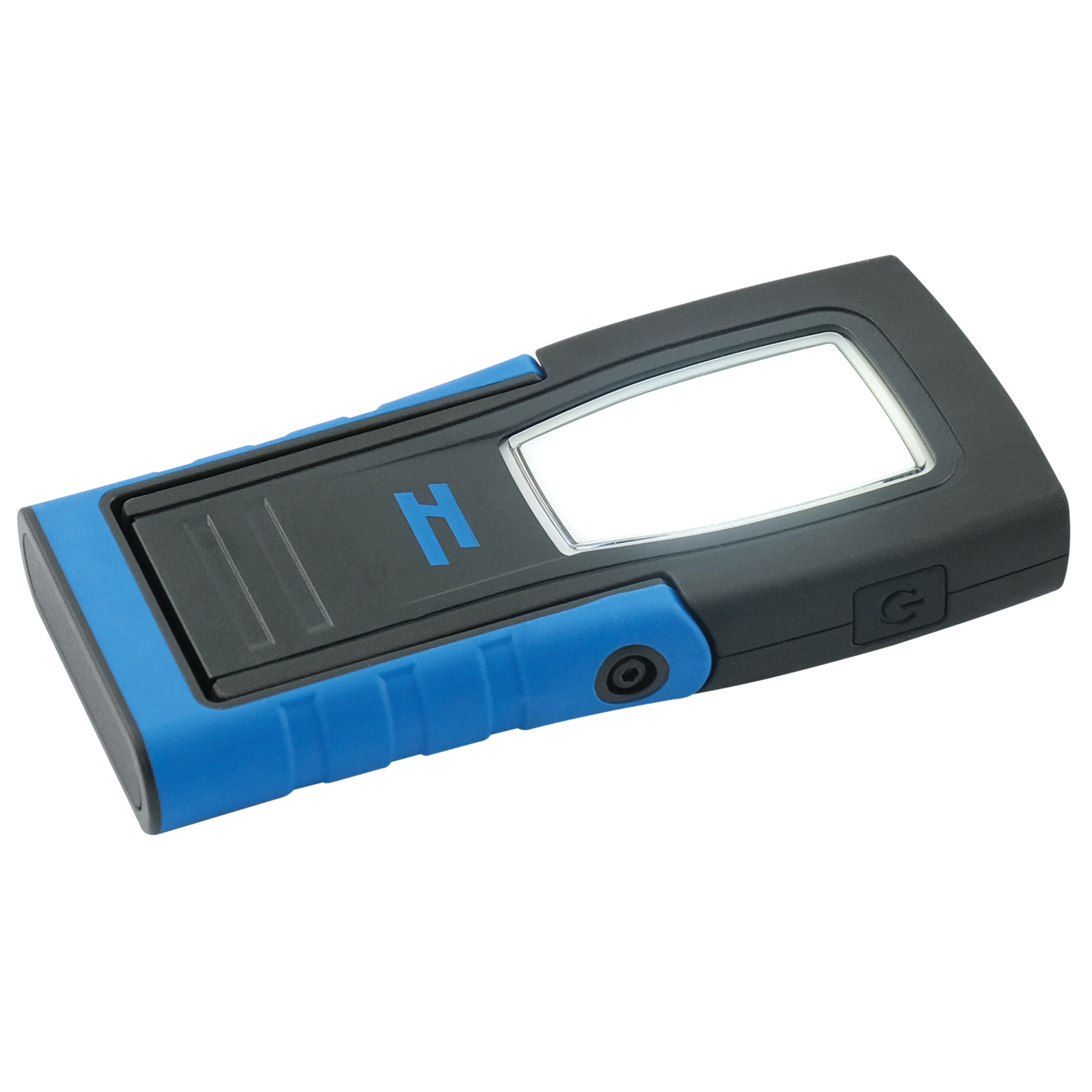 Das flache Design macht die Inspektionsleuchte sehr angenehm in der Handhabung. Dank dem Magneten und dem um 180° schwenkbaren Fuss ist die Ausleuchtung jederzeit am benötigten Ort. Mit dem Clip auf der Rückseite inklusive Haken kann die Leuchte auch aufgehängt oder vorne an der Arbeitskleidung eingehängt werden.