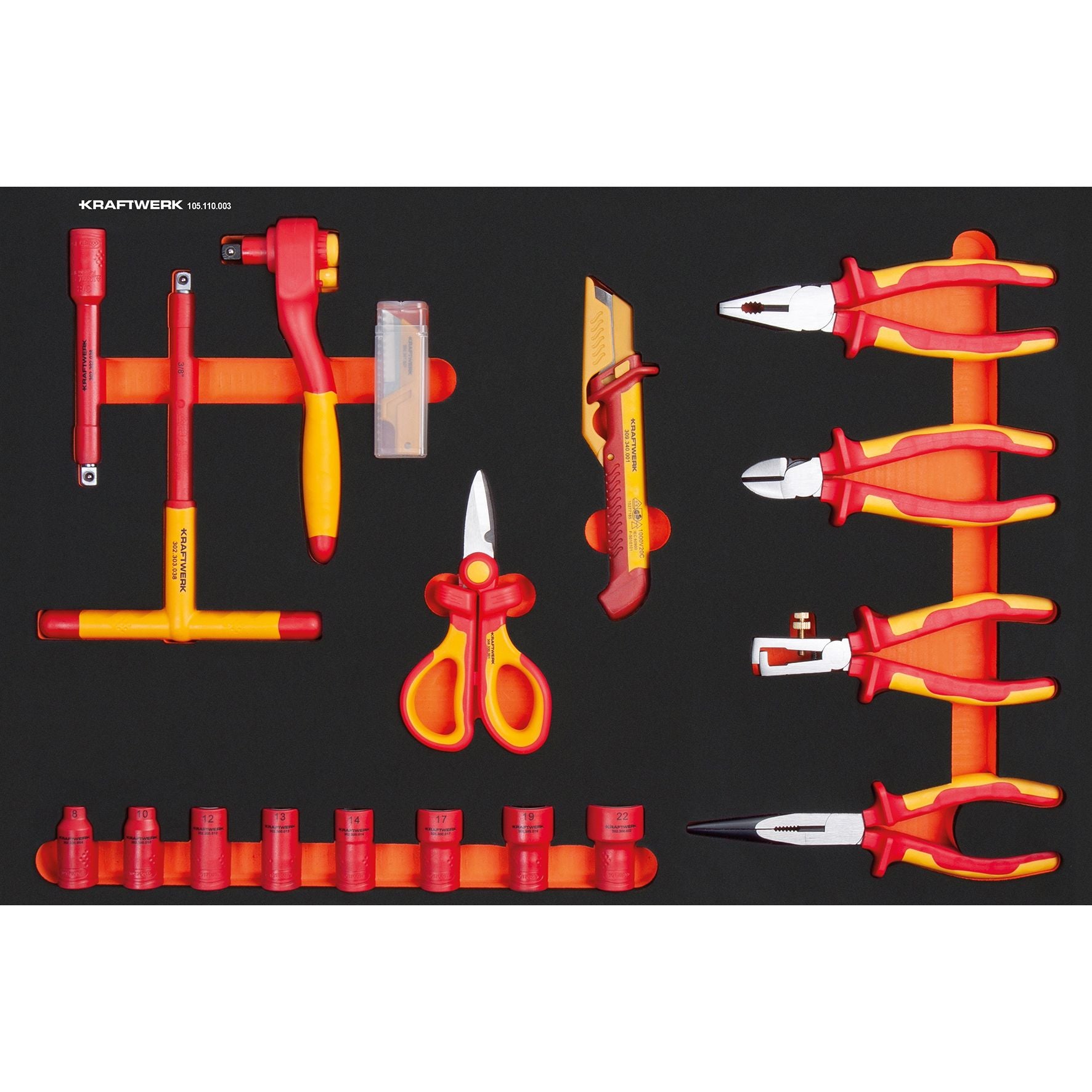 VDE Einlage mit 3/8 Knarre/Stecks./Zangen/Schneidw. 18-tlg. 105.110.003