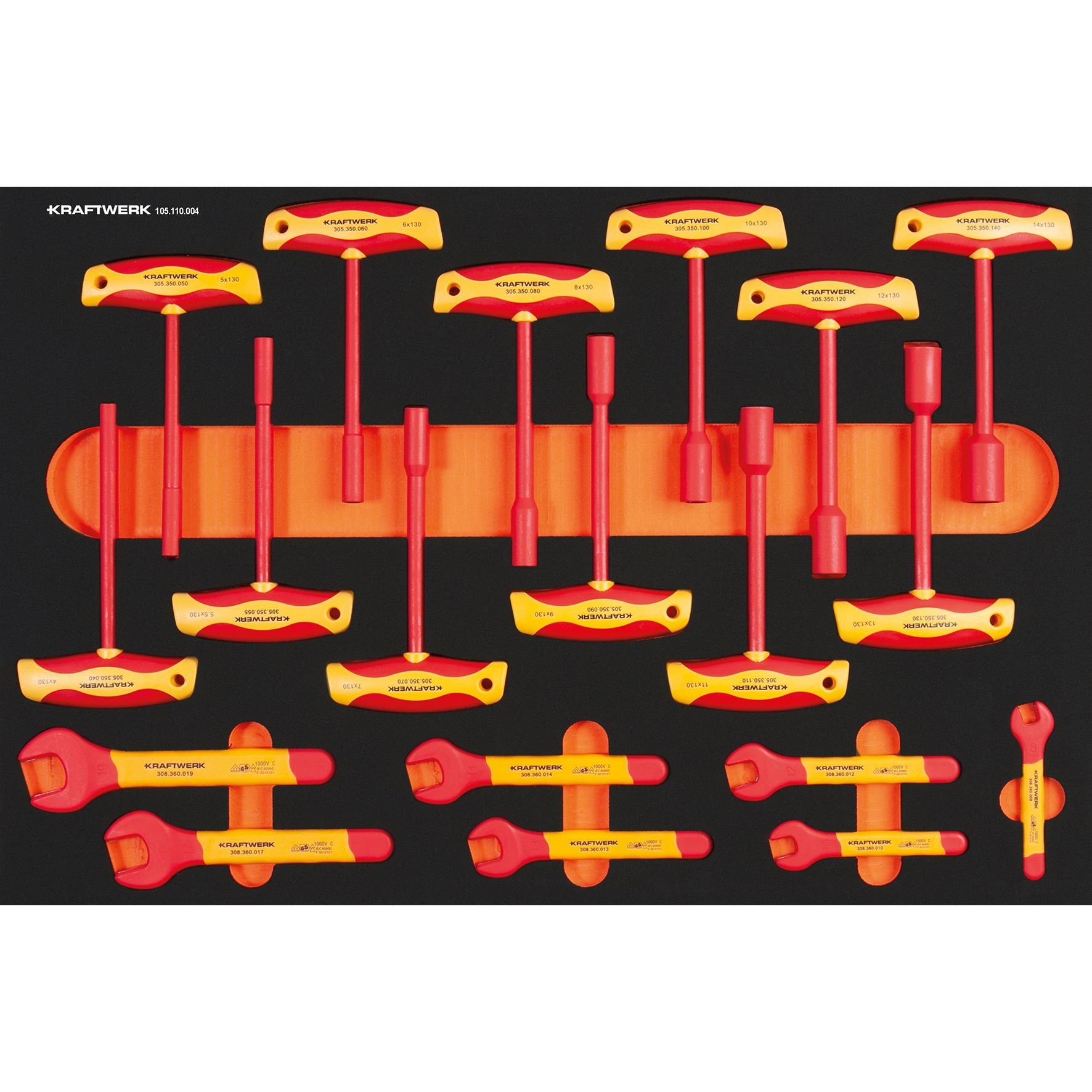 Anwendungsbereich: Ausstattung / Einrichtung VDE Einmaul- und T-Griff Steckschlüssel-Einlage, 60 × 40 cm, 19-tlg. VDE T-Griff-Steckschlüssel: 4 - 5 - 5.5 - 6...