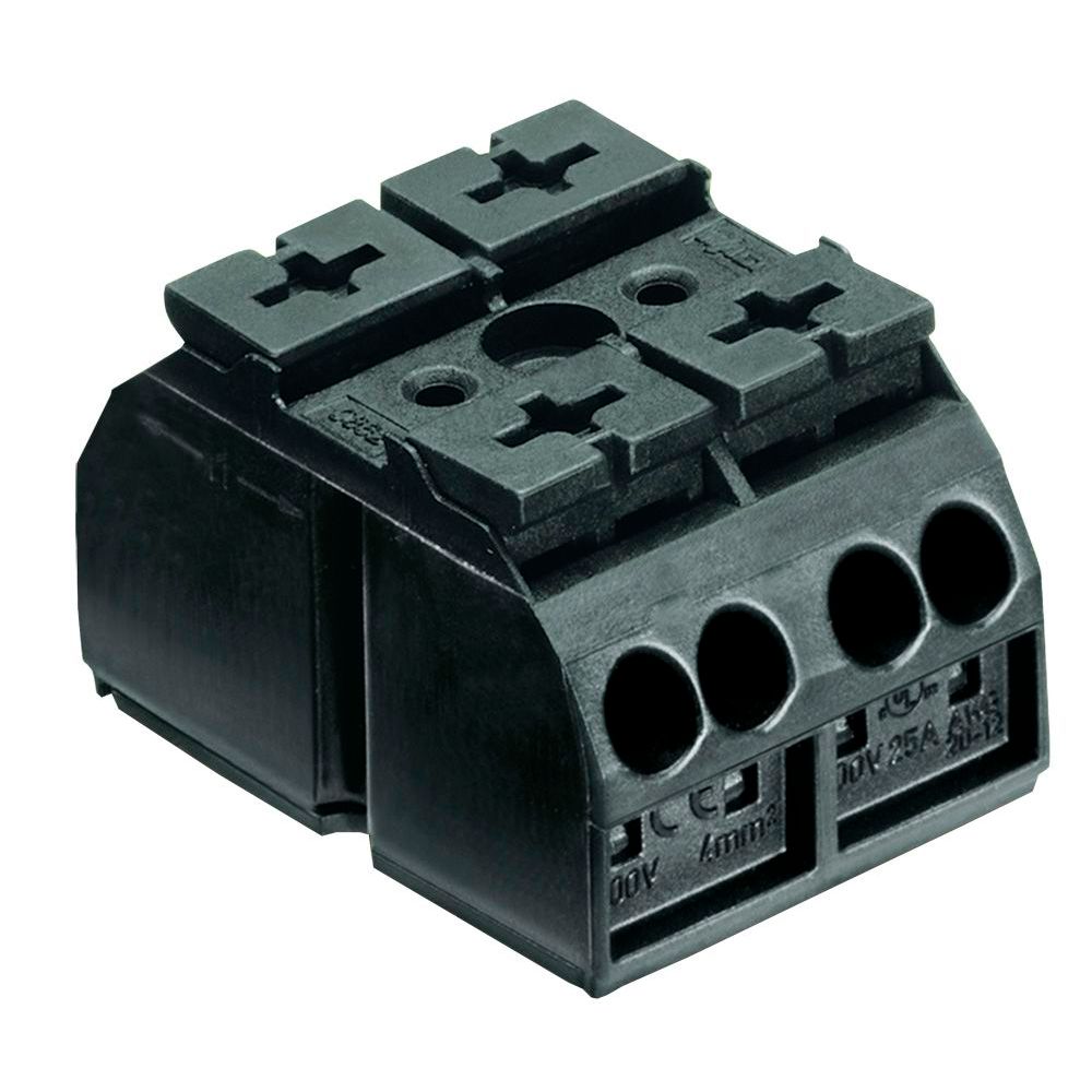 Max. 32A, Beschriftungsstreifen dazu: 709196 4er-Leiterklemme, 2-polig mit CAGE CLAMP® Anschluss, Befestigung mittels Schraube M3 oder Blechschraube ø 2.9mm; pro...