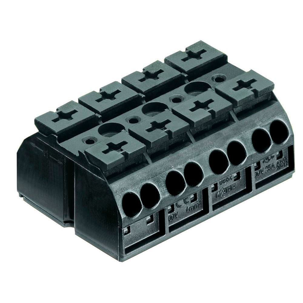 Max. 32A, Beschriftungsstreifen dazu: 709196 4er-Leiterklemme, 4-polig mit CAGE CLAMP® Anschluss, Befestigung mittels Schraube M3 oder Blechschraube ø 2.9mm; pro...