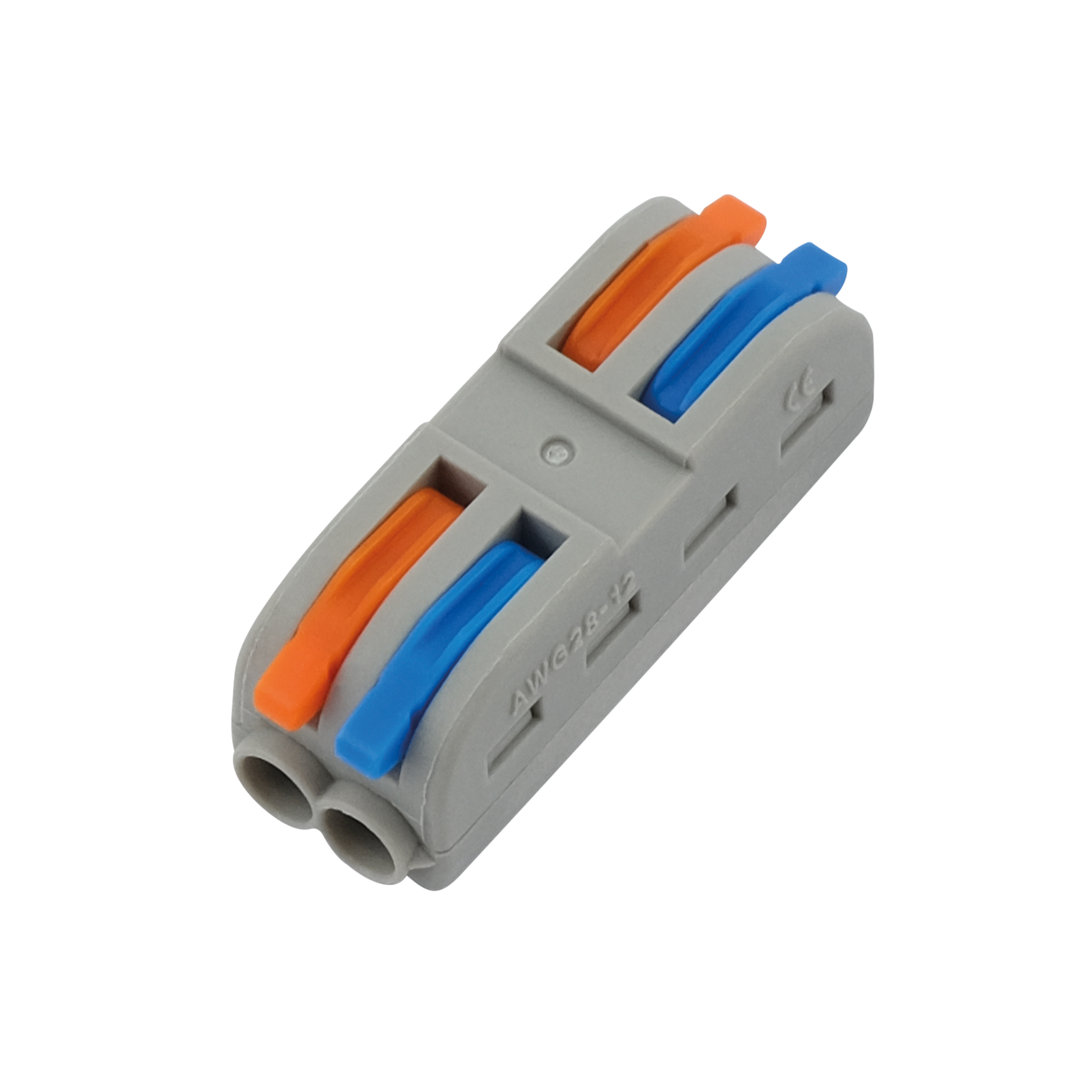 Beidseitig farbcodierte potential-getrennte Hebelklemmen zum einfachen Verlängern und Verzweigen von Leitungen.Kabelquerschnitt0.14 - 4.0 mm2