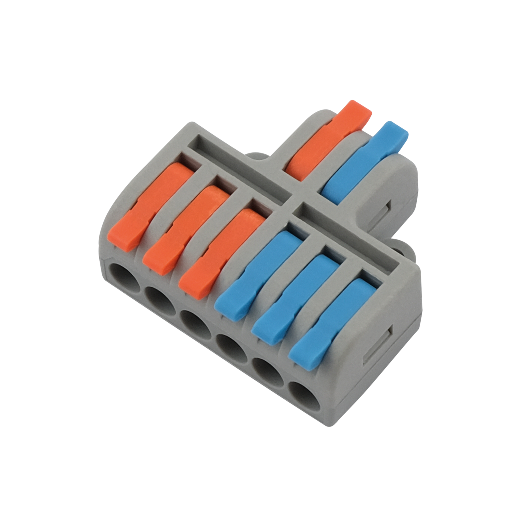 Beidseitig farbcodierte potential-getrennte Hebelklemmen zum einfachen Verlängern und Verzweigen von Leitungen.Kabelquerschnitt0.14 - 4.0 mm2